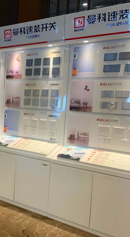 在此次新品發布會上,代表著曼科開關在終端形象展示的投入上不斷創新、精益求精的努力成果——經過全新升級的曼科品牌終端展示柜也迎來了首次亮相,得到現場客戶的關注與認可。