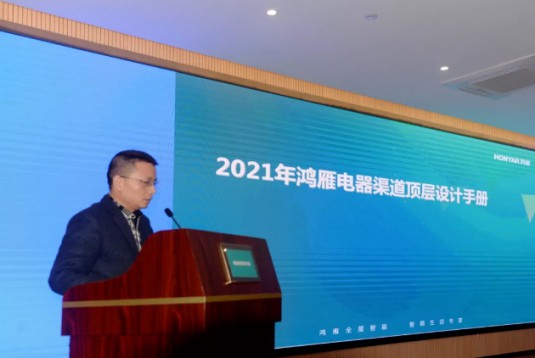 為了規范2021各渠道區域市場,鴻雁電器市場部總經理王育炳在會議上宣貫了2021年鴻雁電器渠道頂層設計手冊。就如何做好渠道頂層設計,王育炳提出,要做好渠道頂層設計,必須從渠道開發、產品組合、價格體系等幾個關鍵方面進行全面推進。