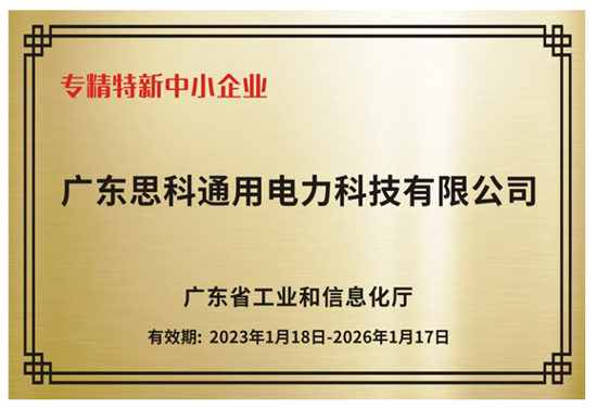 近日,廣東省工業和信息化廳公布《2022年專精特新中小企業和2019年到期復核通過企業名單》,廣東思科通用電力科技有限公司名列其中,榮獲“2022年專精特新中小企業”榮譽稱號。