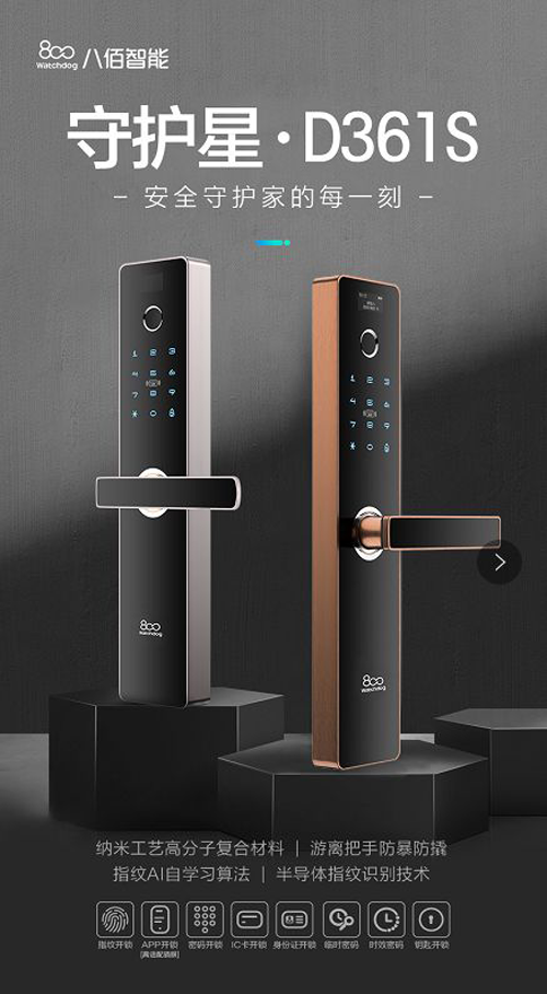 這次八佰的品牌升級也已在產品層面實施。在產品命名上,八佰一改變了以前只用數字和英文來命名產品的方法,給產品加上了一個響亮且高度可識別的中文名字。例如,在安全性方面具有非凡實力的D361S被命名為“守護星”,融合貓眼可通過視頻遠程控制的D812F被命名為“天眼星”,而具有超高顏值和高端定位的D820F則被命名為“天王星”...每種產品將根據其自身特點被命名為匠星系列的成員。八佰智能鎖將憑借完整的“匠星系列”系列產品矩陣,形成覆蓋高端、中端和低端市場的銷售網絡,更進一步占領市場。