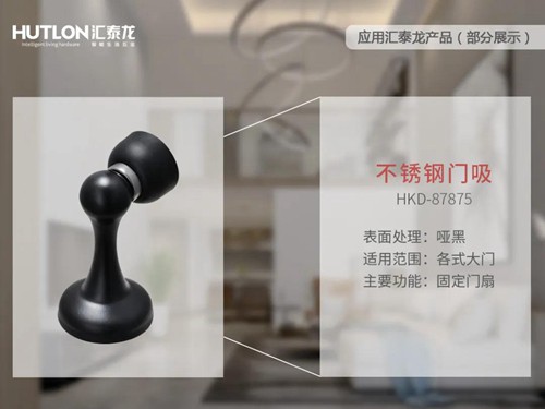 在房門定門方面,江蘇省國際人才公寓選用匯泰龍HKD-87875不銹鋼門吸,用以固定門扇。以免住戶本來只是想開門通通風,結果讓門扇卻變成“定時炸彈”——清風拂過后,門扇與門框來一次親密的擁抱,并發出沉重又有力量的一聲:“砰!”,把人嚇到,營造靜謐的生活空間。