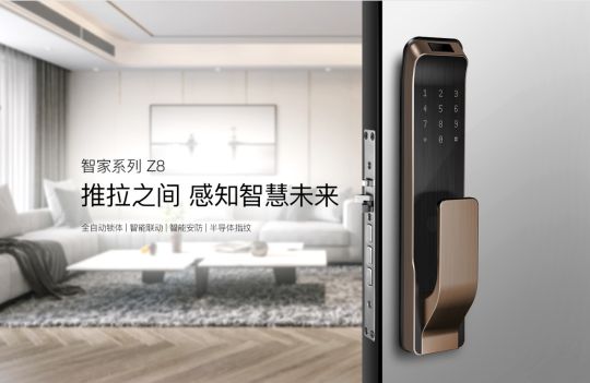 智能門鎖Z8采用流線型的設計,簡約時尚,把手可推拉,隱藏式指紋解鎖,機身采用進口鋅合金打造,堅硬耐磨。