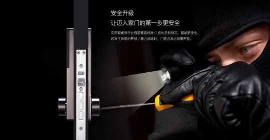 智能鎖采用了更安全的C級鎖芯,異常開鎖時會自動報警。