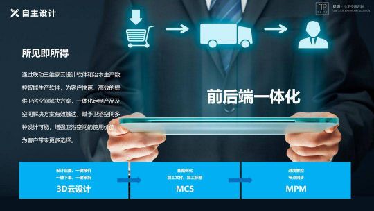通過聯動三維家云設計軟件和治木數控智能生產軟件,實現節約時間、縮短產品交期、顯著提升生產效率的前后端一體化定制生產,為客戶提供快速、高效的全衛浴空間解決方案,讓一體化定制產品及空間解決方案有效觸達,增強衛浴空間的使用價值,為客戶帶來更多選擇,高效滿足每位客戶的個性化定制需求。