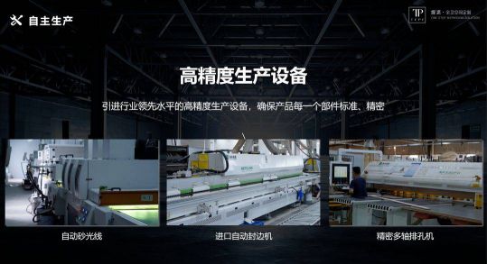 全線引進全自動高精度生產設備,實現了從開料、封邊、封膜到噴漆等多道工序一體化自主生產,以全自動化生產管理提高生產效率,最大限度減少誤差,實現安全綠色生產,打造全衛空間定制的高品質智造典范。