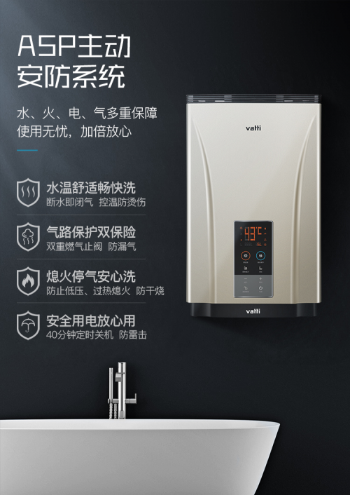 安全問題是許多在家的人會擔心并經常忽視的問題。北方的霜凍、南方的強風和突然斷水的干燒都可能造成安全隱患。華帝最暢銷的燃氣熱水器i12034已經逐一考慮。整個APS安全系統確保水、火、電和煤氣的安全使用。智能監控可實現斷水斷氣、熄火斷氣、低壓水管過熱斷氣,40分鐘內不用自動關機。整個一套系統,保障你和家人安全。同時,內置機翼型蝸殼設計放置在機器內部,以確保在大風天正常使用,并保護水箱不結冰。
