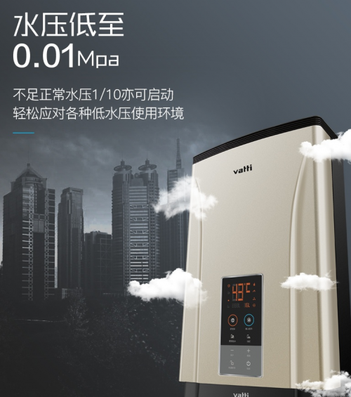 華帝的超低壓啟動技術可以正常啟動,甚至低至——0.01Mpa,是正常水壓的十分之一,可以輕松應對各種低水壓的老高層住宅。