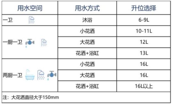 一廚兩衛,盡量選擇16L的產品。三個洗手間,可以選擇16L及以上產品。