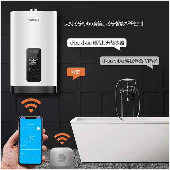 YORK約克零冷水燃氣熱水器YK-FT3基于Biu系統,可通過蘇寧智能APP和小Biu音箱實現多種遠程操控方式,提前預約熱水、調節溫度等。有時只需一句話的事兒,即可開啟智能沐浴新生活,體驗智能家居樂趣。