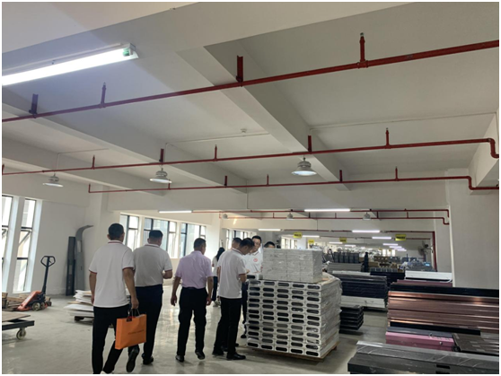 在本次走訪中,商會領導參觀了原料庫、生產車間、企業展廳等,對歐沐莎的生產經營情況有了一定的了解。在執行總裁王磊的帶領下,領導一行進入到歐沐莎生產車間,實地考察了歐沐莎的生產設施和工藝流程,對歐沐莎集成熱水器產品卓越的生產工藝、嚴苛的生產流程,以及品牌發展歷史有了一個深入的了解。