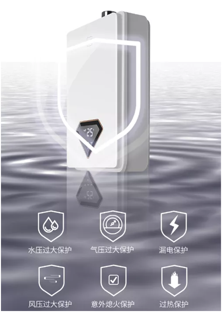 對于用電、用氣的燃氣熱水器,沐浴安全保障是基礎(chǔ)。對此,考慮到用戶在使用時的人身安全,燃氣熱水器H61搭載了多重安全防護系統(tǒng),如水壓、氣壓過大保護、熄火保護、漏電保護、防干燒保護、防凍保護等,實時保障用戶洗浴安全。
