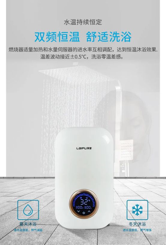 萊普即熱式熱水器水溫持續恒定,可快速加熱,精準控溫,溫差波動接近±5℃,讓你洗浴再無溫差感。