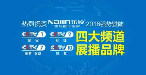 經過央視嚴格的資質審查和考核程序,樂鈴在央視廣告競標中脫穎而出。智能隱形廚房品牌廣告隆重登陸央視CCTV-1、CCTV-2、CCTV-7、CCTV-10,這是樂鈴在迎接2016年品牌推廣中邁出的一大步。央視廣告上線后影響巨大,將顯著提高樂鈴智能隱形廚房知名度和影響力。