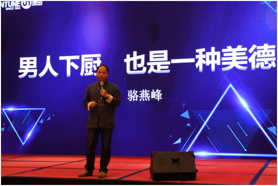 大會上,銀田品牌顧問駱燕峰先生就“男人下廚也是一種美德”主題展開演講。駱老師通過形象生動的演講方式詮釋了銀田廚電在新時代下將如何賦予品牌新理念!