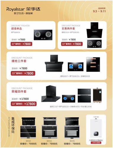 而此次活動主推的油煙機、燃氣灶、電烤箱、集成灶、消毒柜、熱水器六大頂級爆款,無不凝結了榮事達廚衛在用戶體驗升級、智能化等方面的原創實力,給用戶提供更多個性化選擇,全面提升了中國家庭的廚房幸福感。