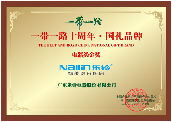 2023年11月,樂鈴廚電成功入選“一帶一路十周年·國禮品牌”,以民族品牌身份,將國禮品質傳送至全世界。國家高度關注并支持民族品牌企業在“一帶一路”框架下拓展品牌力量、增進國際美譽度。值此“一帶一路”十周年之際,絲路文化之旅組委會發起“一帶一路十周年國禮品牌”活動,旨在從各主要行業領域中,推選出具有代表性及良好用戶口碑的品牌及產品并予以嘉獎。