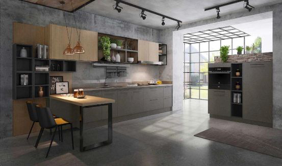 它,有著粗獷自然的外在——設計具體以工業(yè)時代的盛行為背景,精妙應用鐵件金屬、青灰水泥、深淺原木復原里昂工業(yè)革命時期的情景。利用科學的設計,司米櫥柜里昂將廚房功能再次整合,科學合理規(guī)劃用廚空間,配備人性化、現(xiàn)代化的廚房零部件,進而優(yōu)化整體廚房的工作流程,制訂出一體化的解決方法,同時兼顧個性化需求,功能性與顏值皆全方位超過了傳統(tǒng)廚房。