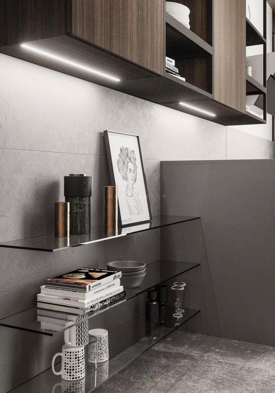 當廚房櫥柜不再僅僅是廚房櫥柜,為它也注入不同的元素,是不是就會衍生出不同的形態。利用巖石板、金屬、木材等材料,融入了設計者的制作熱情,打造出潔凈輕奢的感覺,讓女主人在廚房也可以享受社交歡樂。