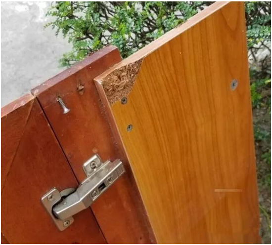打開櫥柜門后,金玉其外敗絮其中的品質馬上暴露出來了!這就是客戶毫不猶疑換廚柜的終極原因。