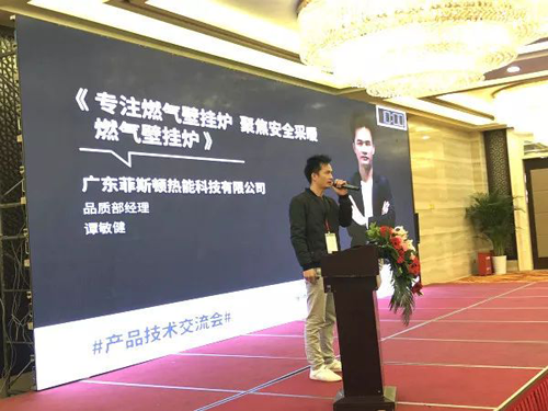 菲斯頓壁掛爐品質(zhì)部經(jīng)理譚敏健在會(huì)上做“安全采暖”專題分享