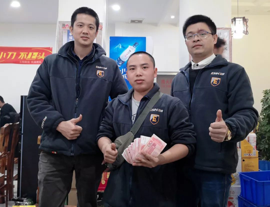 隨后,陳群代表羽順向11月17日在嚴寒中見義勇為救助落水者的羽順技術工程師黎德軍發放了獎勵金,向舍己救人的黎德軍致以崇高的敬意。