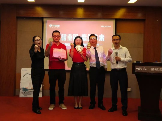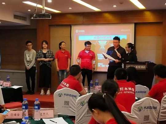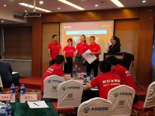 最后為了鞏固培訓效果,培訓會特意安排了考試環節。在評委的監督下,最終完成了小組PK賽的評比,木林森照明家居渠道總監吳三春為獲獎團隊頒發了榮譽證書和現金獎勵。