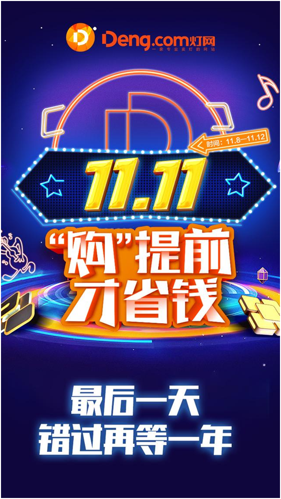隨著這一場光影變換的盛大晚會落幕,雙十一狂歡的尾聲響起。昭示了每一位Deng.com燈網家人的必然相遇,讓我們共同期待著,Deng.com燈網的新起航、新天地!