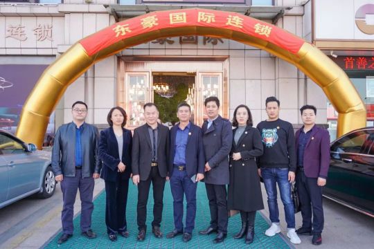 考察組在東豪國際連鎖合影(左一:嘉宏燈貿中心常務副總沈君峰;左五:東豪國際連鎖董事長許峰)