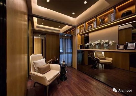書房的照明設(shè)計也最主要考慮用眼健康的問題,既不能太刺眼又不能太暗。所以采用中性光的暗槽燈帶和更大功率的防眩 射燈結(jié)合,營造寧靜的氛圍和健康舒適的照明環(huán)境。