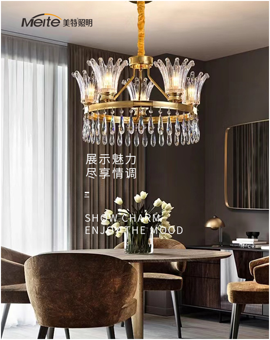 設計,是不斷的追求生活的品質,美特照明將自然元素和諧地融入燈飾設計,將藝術雜糅于生活的點滴,摒棄繁雜的造型,留存純粹的線條,精致優雅,讓燈不僅僅是燈,更是一件精美裝飾品。