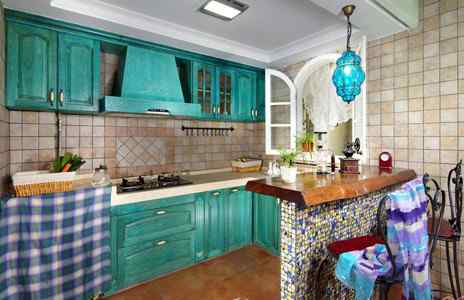 燈光作為一種補充光源,燈飾本身的色彩也需要與周圍的環境相融合,如下圖中燈的色彩與櫥柜色彩的呼應,將燈飾很好的融入到了整體的環境中。