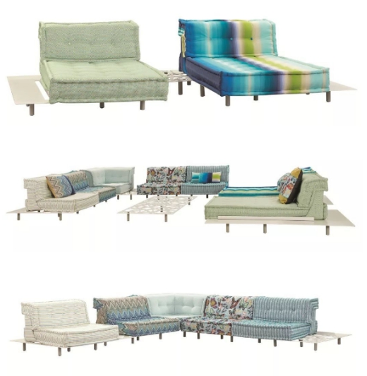 戶外家具格外受寵,功能方面人性化升級,速干、防水、防曬、鎖色……2019年春夏上新的戶外版本 MAH JONG(麻將沙發),使用頂級針織品牌MISSONI HOME的專供防水面料,內部填充最新研發的快干泡棉,超越傳統泡棉的三倍速度的瀝干能力。每一模塊麻將沙發有合身的保護罩,暴雨等惡劣天氣也不用擔心家具的損耗問題。配套的金屬支架可以固定沙發,涂漆防腐防銹,座位兩側的托盤可存放墨鏡、毛巾或防曬霜。