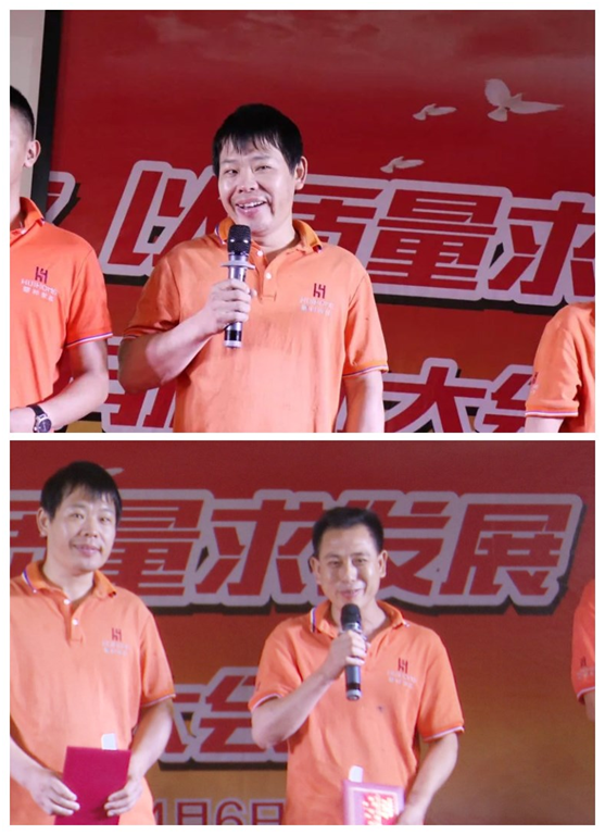 總經(jīng)理馬志先生為獲獎家人頒獎,品質(zhì)部經(jīng)理喻雄做活動總結(jié),優(yōu)秀匠人代表張遠培、鐘宇、王華保、黃燕峰、劉祥福、羅青國心得分享。