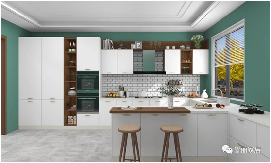 廚房整體采用經(jīng)典的白色門板將視野拓寬,整體設(shè)計(jì)藏露結(jié)合,既方便零散物品的存放,又方便常用物品的拿取。