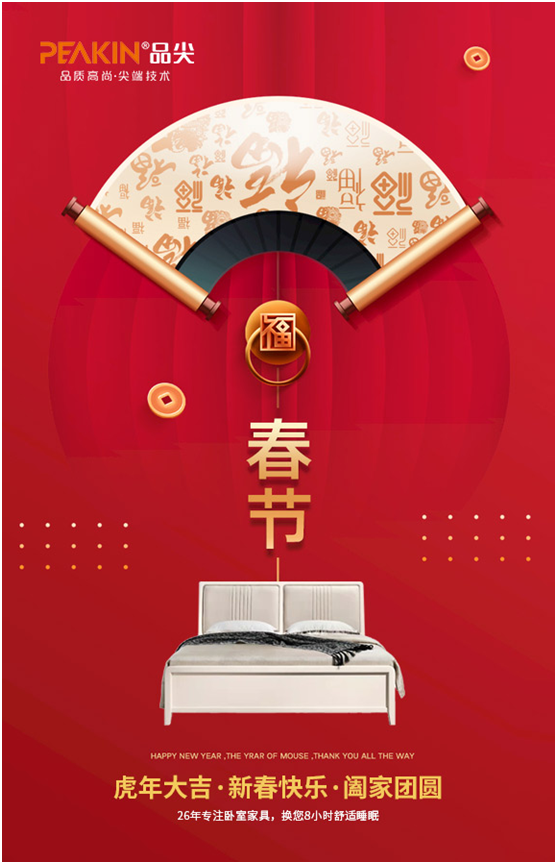 “一元復始山河美,萬象更新錦繡春”,在此辭舊迎新、吉祥喜慶的時刻,品尖家具給大家拜年啦!祝大家新虎年吉祥,心想事成,事事順心!