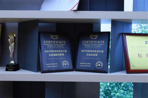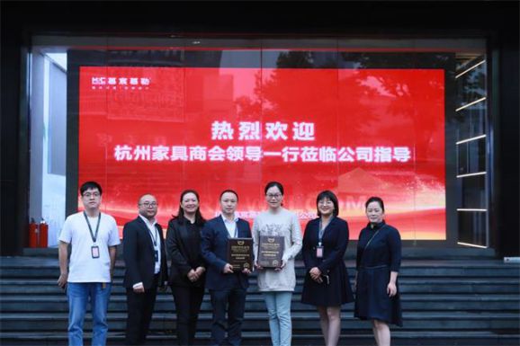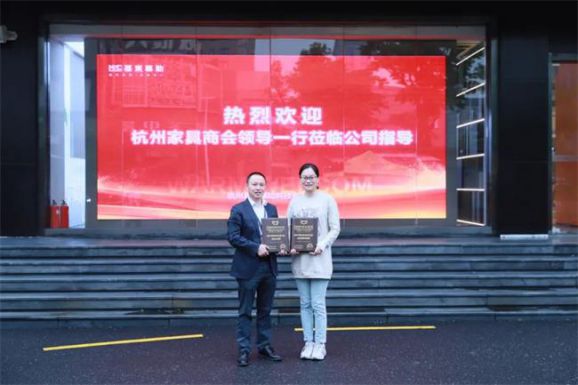 2022年5月10日,杭州家具商會一行領(lǐng)導蒞臨慕宸,為慕宸頒發(fā)2021杭州家具行業(yè)企業(yè)創(chuàng)新優(yōu)勝獎、杰出企業(yè)獎兩個獎項,并且對慕宸進行了現(xiàn)場考察與指導建議,公司總經(jīng)理楊關(guān)平全程陪同接待,對杭州家具商會一行領(lǐng)導表示熱烈歡迎。