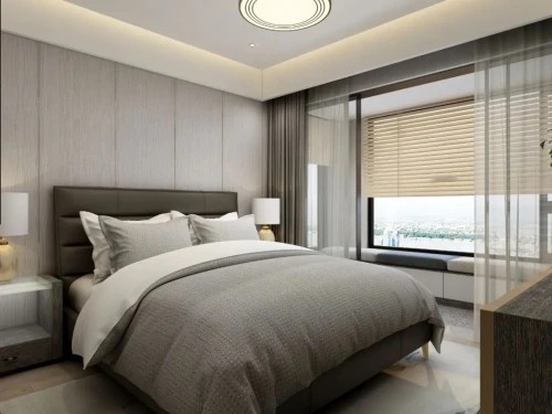 愜意的舒適感,從來沒有過多繁瑣的造型,灰白咖同樣可以營造溫馨舒適的居住氛圍,線條簡約的金屬床和玻璃柜面定制衣柜,讓整個空間通透、輕盈。黃色軟裝飾品的運用點亮整個空間。