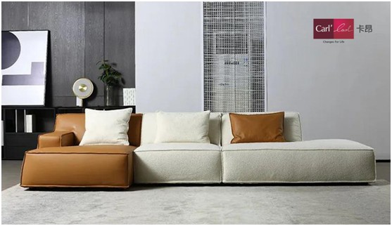 卡昂“焦糖瑪奇朵”沙發整體采用焦糖色科技生態皮+奶白色泰迪絨,白色與棕色,化作天生的搭檔,彼此滲透交融,碰撞出驚人的能量與張力,打破空間的單一感與沉悶感,突顯格調又不炫耀。極簡藝術和色彩美學讓空間情緒純粹而寧靜,將矛盾感表達得恰到其分,營造出時尚前衛的感覺。沙發采用組合式的連接結構,用戶可以自由組建心目中的理想組合,形成不同形式的沙發群,即可變換新穎的外觀。“Less is more”,正是現代人探尋的幸福良方。