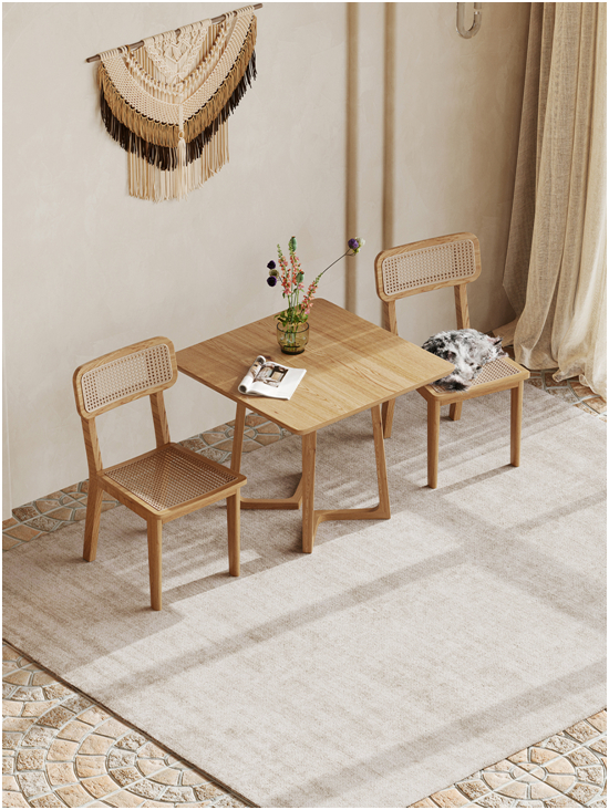 炎熱的夏天總有理由讓人食欲不振,而正確的打開方式是通過空間布置制造夏日清涼氣息,同時增添了一份生活氣息。洛品有家一套木質餐桌椅,線條柔和,能讓人快速融入安逸舒適的環境中,不會占用餐廳太多的面積,使空間看起來局促。