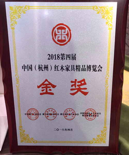 華廈·大不同榮獲“2018中國(杭州)紅木家具精品博覽會金獎”獎牌
