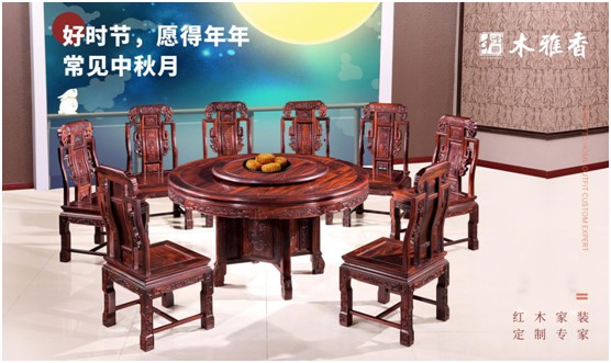 中秋節(jié),是我國(guó)的傳統(tǒng)節(jié)日,此時(shí)月亮又圓又亮,寄托著“圓滿(mǎn)”的美好寓意,因而又叫“團(tuán)圓節(jié)”。在紅木家具中,“圓”這個(gè)經(jīng)典元素也很常見(jiàn),融入中式家裝風(fēng)格,用中國(guó)“圓”來(lái)打造的圓形餐桌,正是恰到好處地契合了一家人圓圓滿(mǎn)滿(mǎn)的主題。
