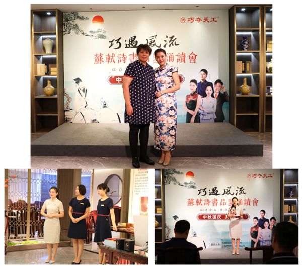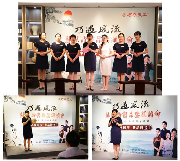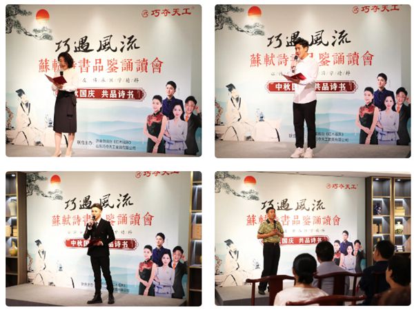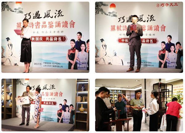 此次活動,邀請了山東家具協會的韓慶生副會長、山東藝術學院的王法進教授、濟南電視臺商務頻道主持人李棟,周雅婷,王凱等嘉賓,與巧奪天工紅木新老客戶及員工們,一起誦讀詩詞、品鑒書畫,流連于蘇軾詩書文字的魅力,讓我們感受到力量與芬芳,在吟誦鑒賞中志存高遠、陶冶情操。