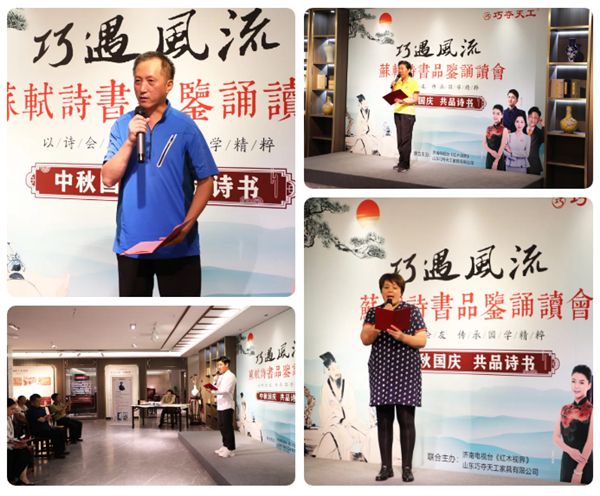“以詩會友,傳承國學精粹”,9月17日,藉此中秋佳節(jié)來臨之際,由山東巧奪天工家具有限公司(以下簡稱巧奪天工紅木)與濟南電視臺《紅木視界》聯合主辦的【巧遇風流——蘇軾詩書品鑒誦讀會】活動正式舉行。
