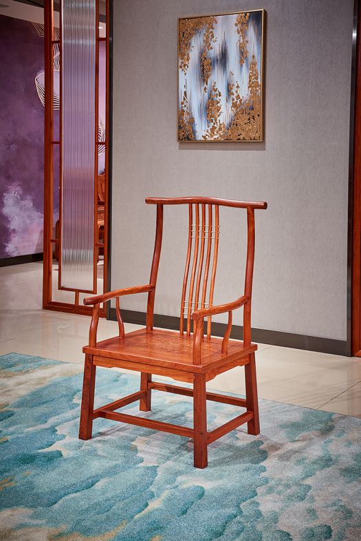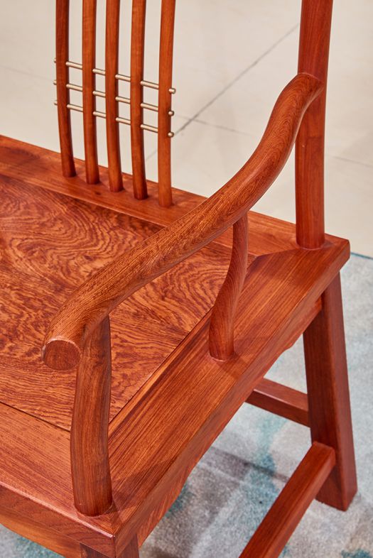 官帽椅搭腦出頭,與古代官員的官帽相似,官帽椅直接將官運(yùn)的亨通顯達(dá)命名其中,寓意仕途的出路。