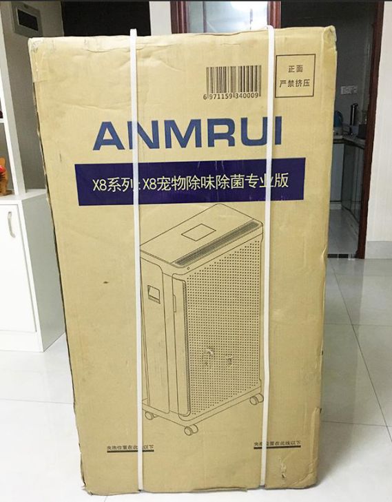 作為一名資深的鏟屎官,已經將小家伙視為自己的家庭成員,但家里小家伙的毛發掉得實在厲害,漂浮在空氣中被人體吸入或飄到家具上沙發上床上等地方……寵物身上的細菌還會傳染給自己和家人,并且現在的空氣和先生吸煙,各種氣味混合在一起給家中帶來難聞的氣味。 收到快遞的第一個印象就是好大,最后借助了平板拖車才把他搬回家,但是大業說明了他的凈化面積。 凈化器采用紙箱加泡沫板包裝,包紙箱向上抽取,厚實的保護材料保證了運輸過程中不會被磕碰。 擁有1060mm*570mm*350mm的機身,白色的外觀很養眼,頂部黑色觸控面板面板,與各種家裝風格都能和諧的相容。