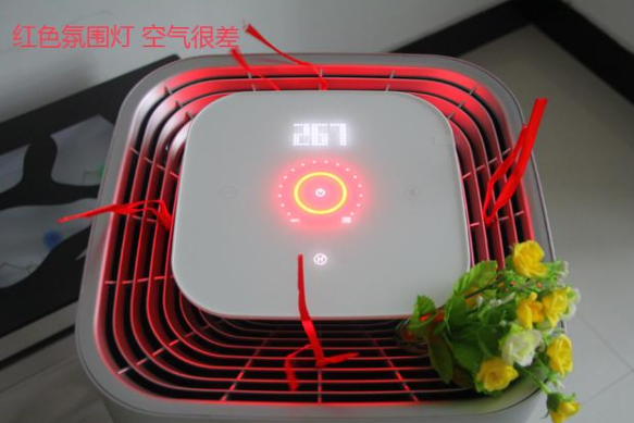 四、內置傳感器、觸屏:觸屏優雅漂亮,有空氣質量數字顯示,配合環形三色感應燈,對空氣質量的監測和反應更加直觀、靈敏。