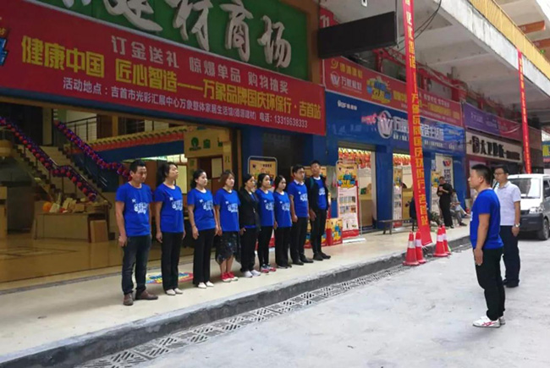 健康中國(guó) 匠心智造——萬(wàn)象品牌國(guó)慶環(huán)保行【吉首站】活動(dòng)自9月21日正式啟動(dòng)以來(lái),公司總部業(yè)務(wù)支持團(tuán)隊(duì)便與吉首萬(wàn)象整體家居生活館組成精英團(tuán)隊(duì)并肩作戰(zhàn)。活動(dòng)期間,旺德府家居產(chǎn)業(yè)集團(tuán)副總裁、旺德府建材董事長(zhǎng)劉偉先生、旺德府建材執(zhí)行總經(jīng)理唐勇先生蒞臨現(xiàn)場(chǎng)督戰(zhàn)。