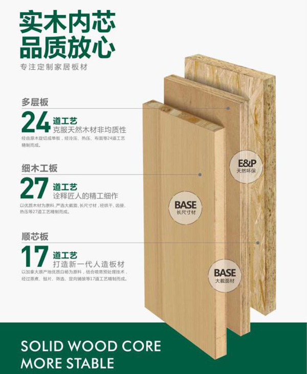 兔寶寶在國內擁有23萬畝速生林基地的原材料供應平臺,為板材產品提供強大而持續的資源支持。兔寶寶在全國擁有以浙江為主要產業基地的四大生產基地,引進國外先進的單板生產線、熱壓機、指接機等設備;先進設備加上嚴格的現場管理,確保產品的持續供應。從原料到成品,兔寶寶真芯造好家!
