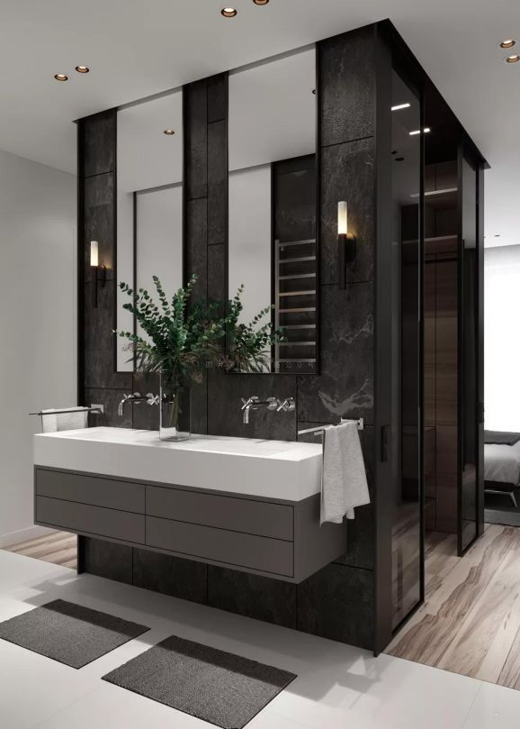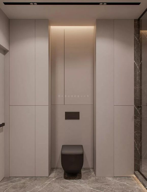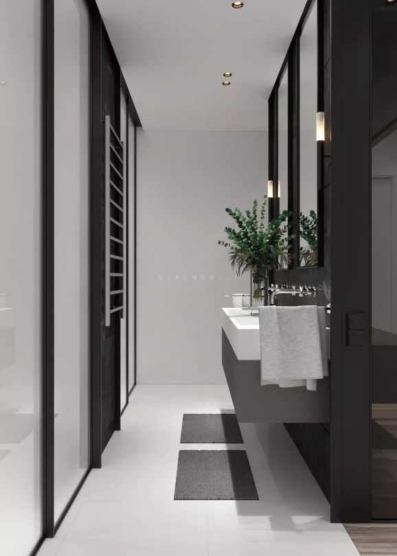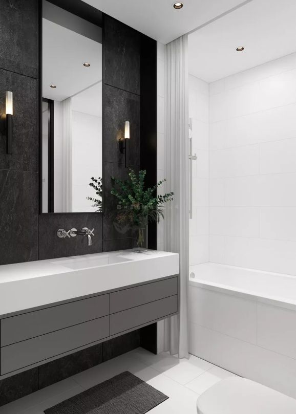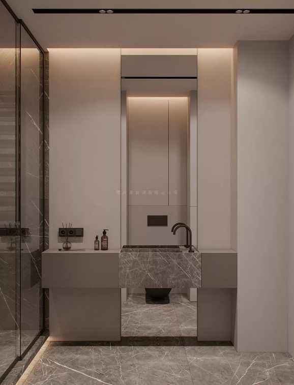 主臥衛浴沿用了空間整體色調營造空間質感,灰白相間的配色,注重簡單舒適的同時以藝術墻點綴 ,打造出輕奢的高雅生活風,有生活,有溫度。