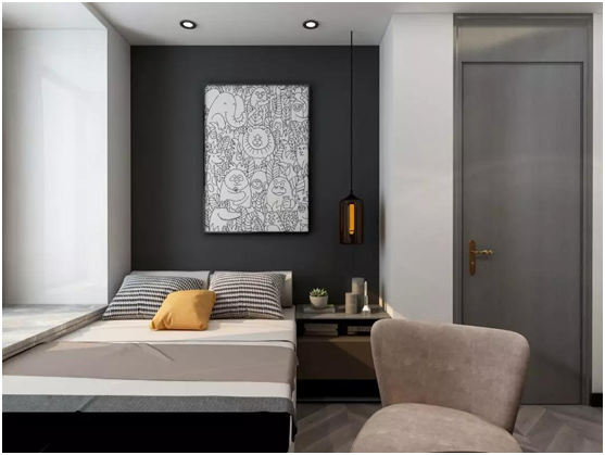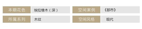《都市》空間的主要花色為 埃拉橡木(深),中性色調(diào)的木材應(yīng)用讓空間更有質(zhì)感,搭配清淡的色彩和石紋讓整個空間顯得理性,不需要多余繁奢的飾品裝飾,幾幅個性掛畫,中規(guī)中矩的燈飾,就呈現(xiàn)出一種都市人時尚簡約的生活方式。